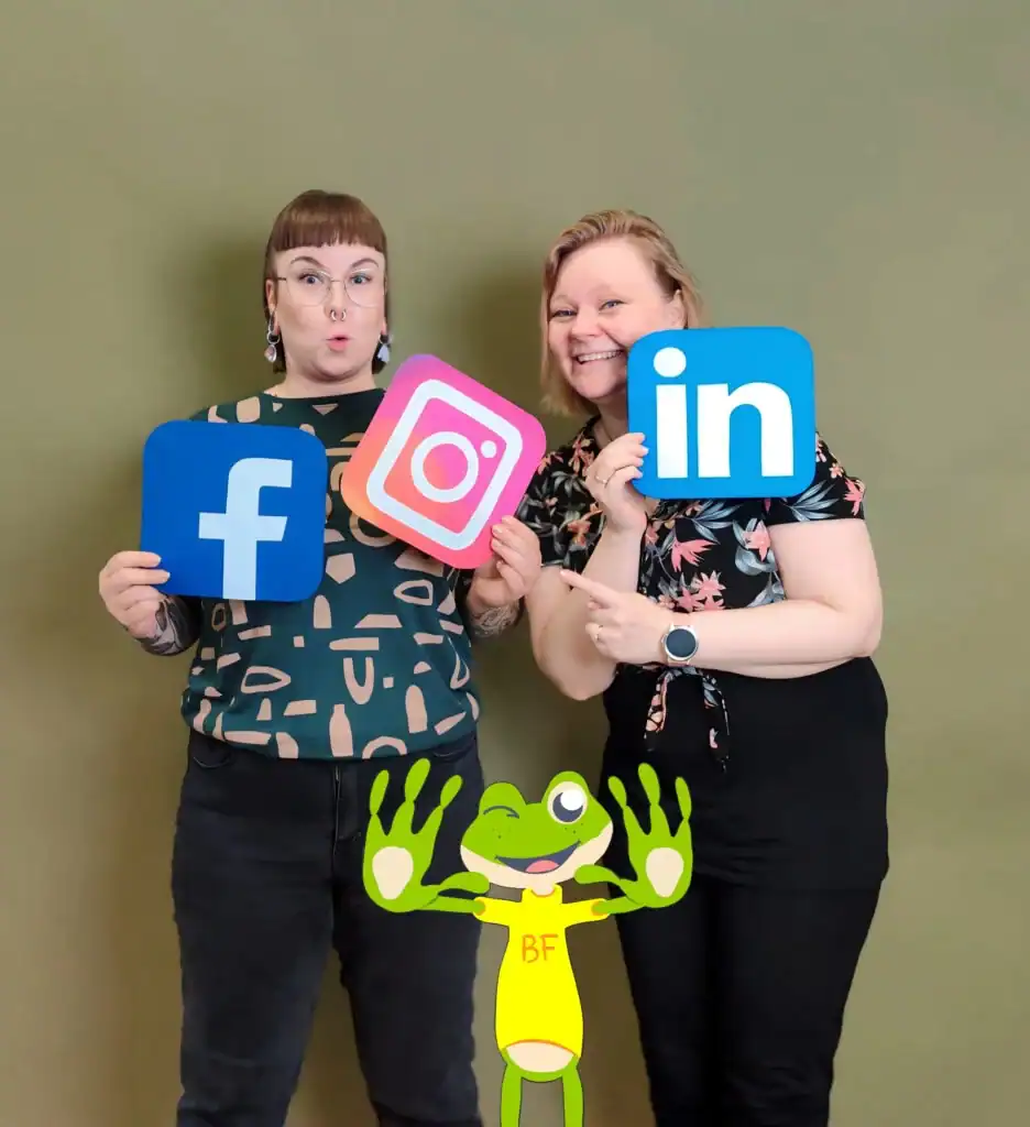 Bruno the Frogin tiimillä on yhteensä noin 25 vuoden kokemus sosiaalisen median hallinnasta ja sisällöntuotannosta. Olemme koulutettuja markkinoinnin sekä viestinnän ammattilaisia ja vuosien aikana olemme työskennelleet monipuolisesti erilaisten asiakkaiden kanssa, jotka edustavat muun muassa matkailun, kulttuurin, teollisuuden ja koulutuksen aloja. Kokemuksemme kattaa sekä B2B- että B2C-markkinoinnin, ja olemme toteuttaneet strategisia somekampanjoita niin suurille kuin pienillekin yrityksille ja organisaatioille.