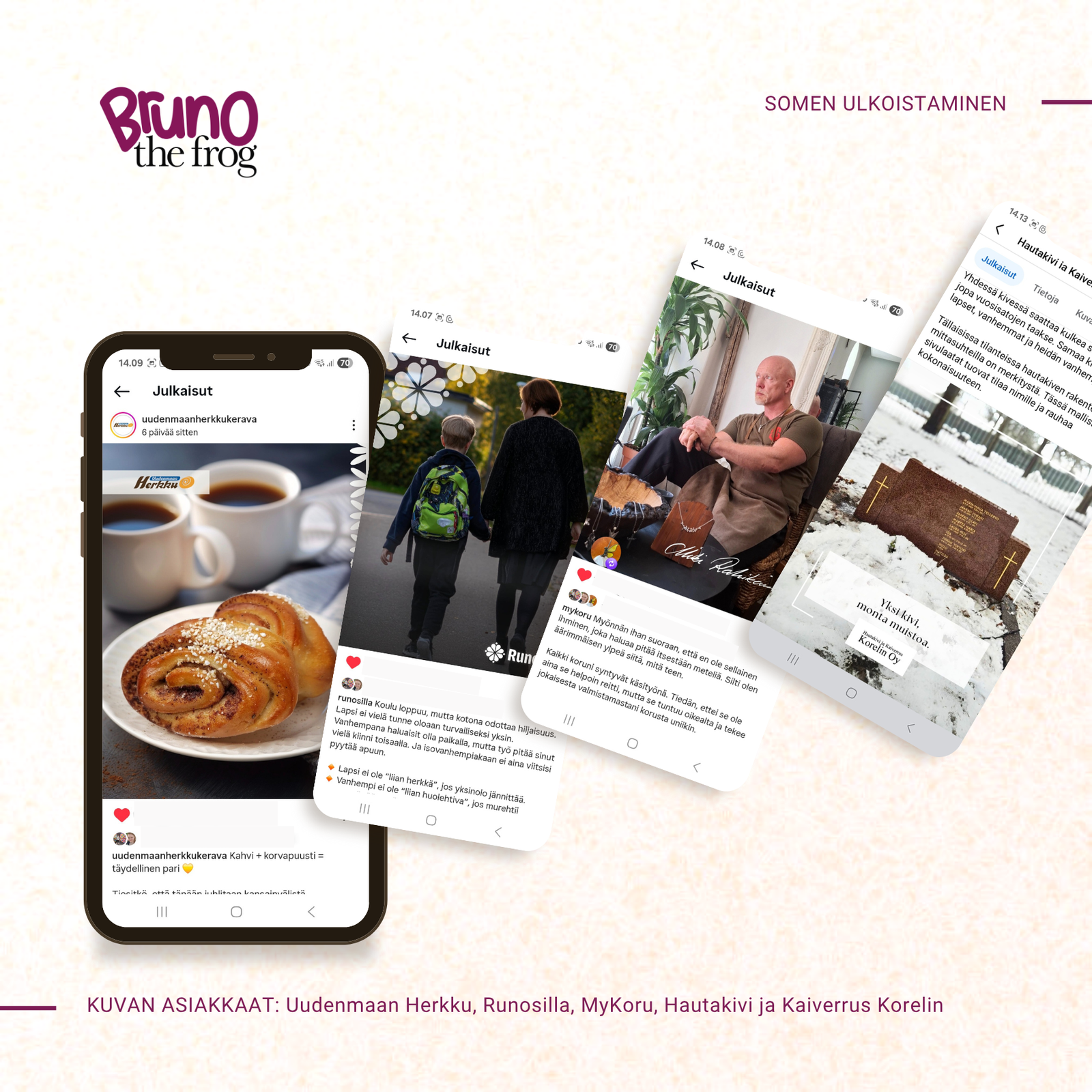 Uudenmaan Herkulle toteutamme sosiaalisen median ulkoistuksen kokonaispakettina. Kirjoitamme julkaisutekstit, muokkaamme kuvat ja huolehdimme postausten ajastuksesta tai julkaisusta sovitun aikataulun mukaan. Kuukauden lopussa toimitamme selkeän raportin saavutetuista tuloksista, ja kerran kuussa istumme yhdessä alas suunnittelemaan tulevaa sisällöntuotantoa. Näin Uudenmaan Herkku voi keskittyä omaan ydinosaamiseensa, ja me pidämme huolen siitä, että some pysyy aktiivisena ja tavoitteellisena.