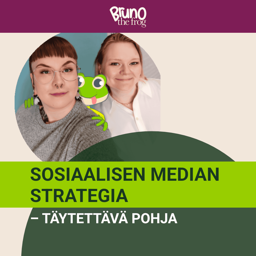Onko somestrategia tekemättä? Onko sen kanssa hankala päästä alkuun? Bruno the Frog tarjoaa sinulle ilmaisen itse täytettävän somestrategiapohjan, jonka avulla saat organisaatiollesi kevyen somestrategian. Pohja auttaa sinua pohtimaan konkreettisia, oleellisia kysymyksiä ja strategian avulla somen tavoitteet ja käytännön tekemisen suunnittelu kirkastuu!